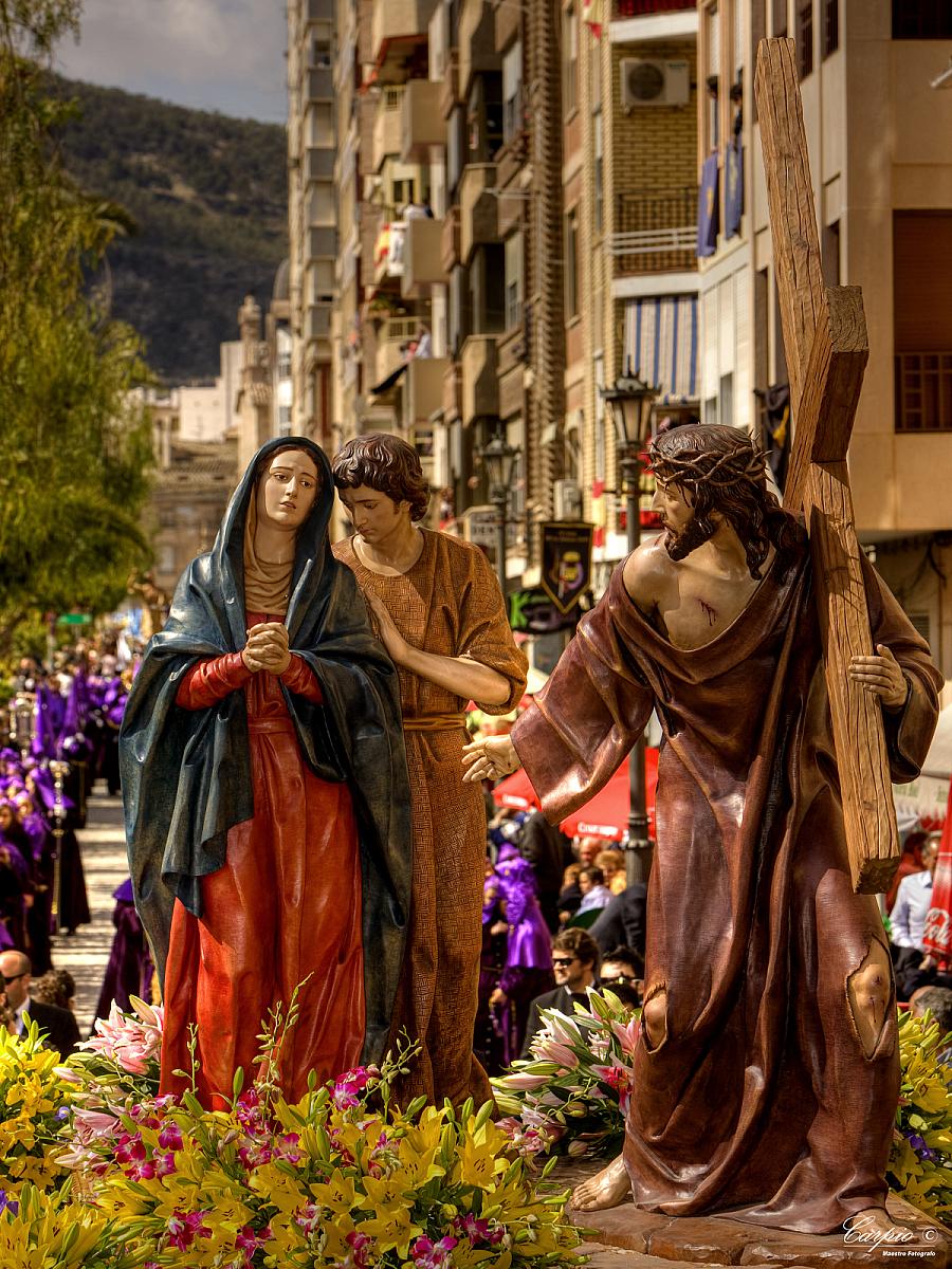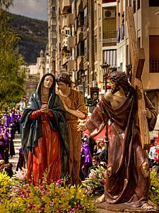 Viernes Santo en la Procesión del Penitente con el Encuentro de Jesús y María en la Calle de la Amargura