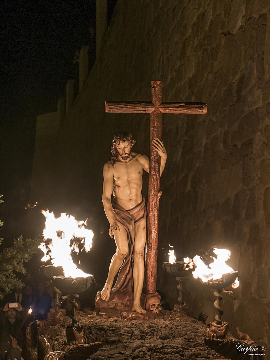 Para ella el escultor murciano José Antonio Hernández Navarro, en el año 2001, tallará la Imagen de Jesús abriendo las puertas de los infiernos y el escultor murciano afincado en Madrid, Antonio Soriano Talavera, un trono en madera en el que se representan escenas el Antiguo Testamento y del Apocalipsis, y que se completa con cuatro pebeteros de bronce, realizados por Artesanía Limón, que surgen de la boca de otras tantas gárgolas en cada uno de los extremos del trono y cuyo fuego es la única iluminación del Paso.