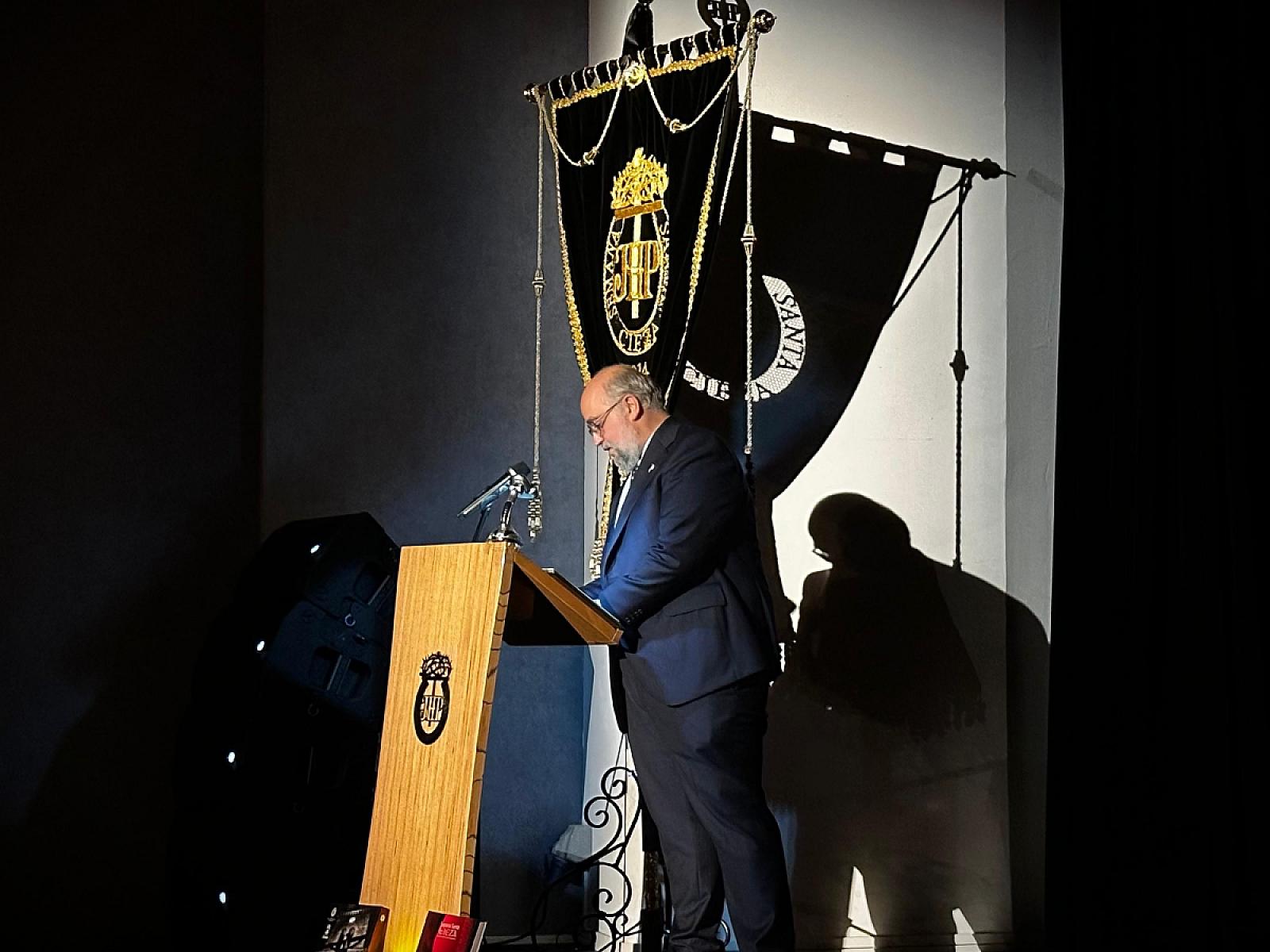 During the ceremony, several people spoke, highlighting his career and his involvement with Holy Week in Cieza. First to speak was the president of the Board of Passion Brotherhoods, who emphasized the importance of Enrique's work over the years and publicly thanked him for his constant collaboration and commitment to the brotherhood community. Later, members of his family also shared some heartfelt words, recalling his dedication, his passion for Holy Week, and the affection with which he always lived and passed on this tradition.