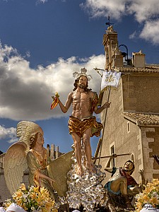 La Procesión del Resucitado hunde sus raíces en el siglo XVII, y esta y su ceremonial se desarrollan en torno a la Imagen de Nuestra Señora de la Soledad, que acompañaba bien a la Custodia, bien a una Imagen de Jesús Resucitado cuya existencia sí está constatada ya en el siglo XIX, cuando dicha Imagen recibe culto en la Iglesia parroquial de Nuestra Señora de la Asunción en una de las hornacinas de la capilla del Santísimo.