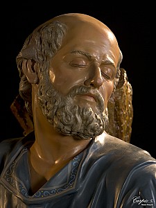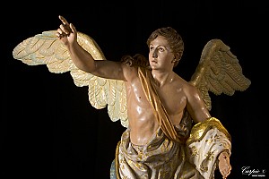 Imágenes de José Sánchez Lozano: Jesús y Ángel, 1967, y autor desconocido: Apóstoles, apróximadamente, siglo XIX; Trono de los Hermanos Lorente, 1972.