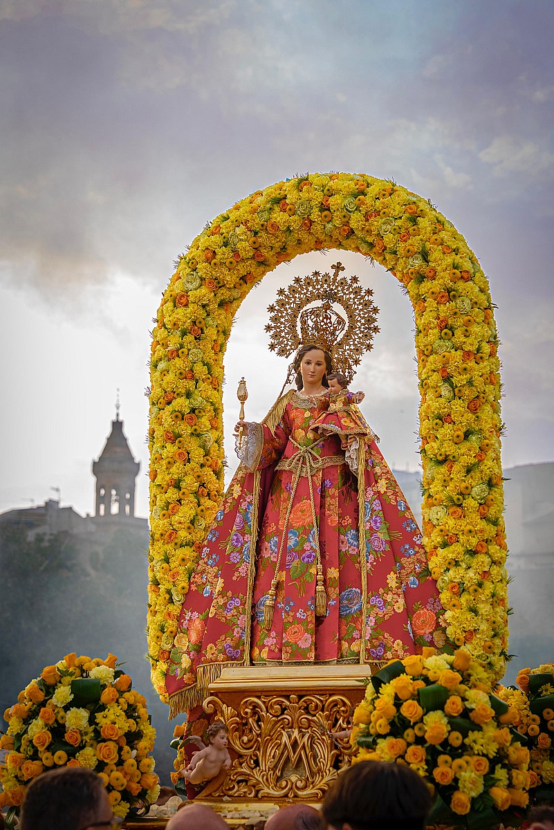 Tras la función religiosa, la Virgen salió a la calle portada, un año más, por hermanos de las distintas Cofradías y Hermandades que componen la Junta. Y a sones de pasodobles tan castizos de nuestros desfiles pasionarios como: San Juan y la Santa Verónica del Maestro León, o los Dormis; nuestra Patrona se dirigía hacia su Ermita.