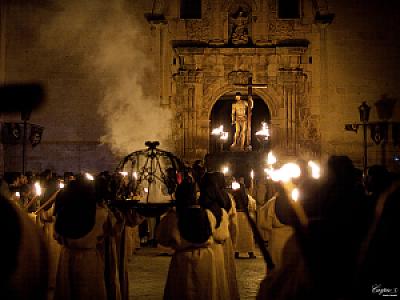 Hora de salida: 3:00h (el tercio de nazarenos sale de la Ermita de San Bartolomé y se dirige por la calle del Cid a la Plaza Mayor, a su llegada, sale el paso desde la Basílica de la Nuestra Señora de la Asunción).